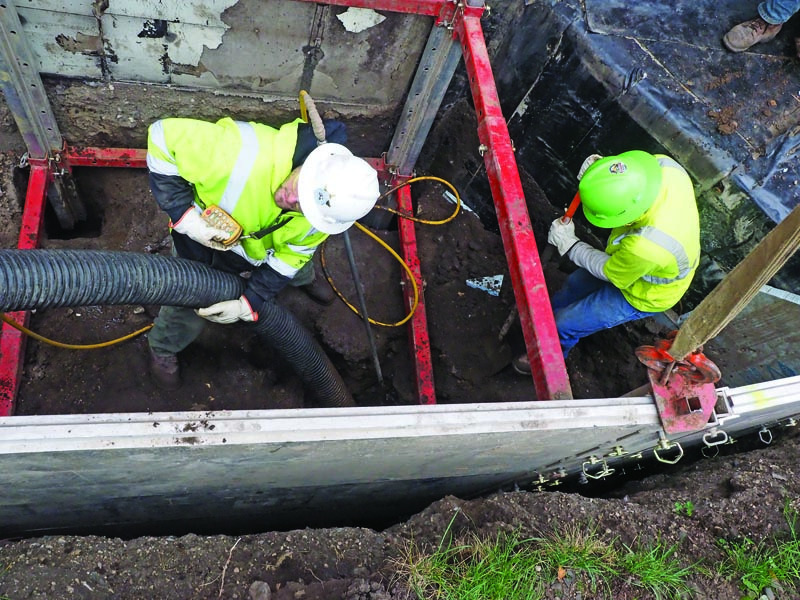 To solve the problem, Morehouse and his crew took a 6-foot-diameter, 6-foot-long piece of culvert pipe and set it down vertically over the fracture, containing the drilling mud. Then they strung 400 feet of hose from shore and vacuumed mud out of the pipe. The truck expelled the mud through a decant hose and into a tail ditch, where vacuum trucks from another company sucked it up and hauled it away. “I was just blown away that one of our trucks could pull material that far,” he says.