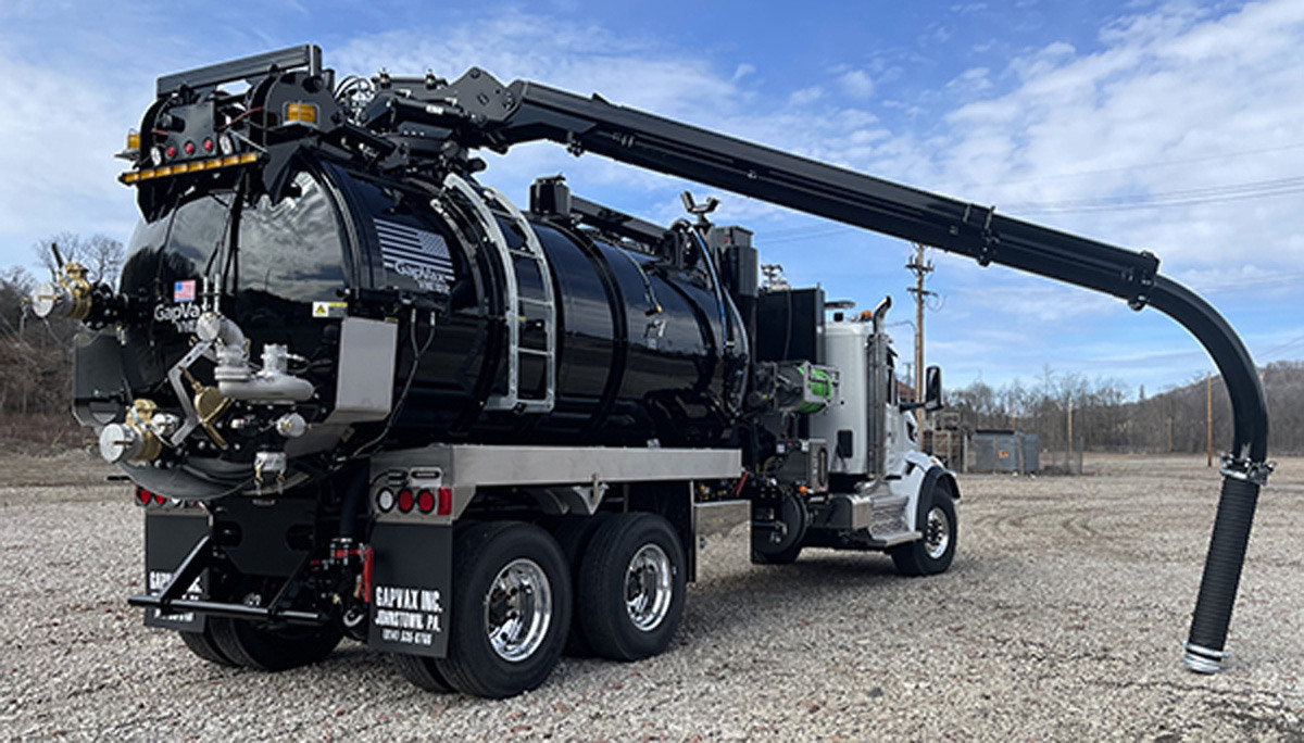 The GapVax VHE hydrovac is built for strength and simplicity. The full-length 6-inch subframe reinforces the chassis frame and provides a stable dumping platform. It comes standard with a full-opening tailgate and 50-degree dump angle for fast, efficient unloading. Customizable options include water tanks from 300 to 2,000 gallons, debris bodies from 4 to 15 cubic yards and a standard 4,500 cfm, 18-inch Hg blower (a 4,000 cfm, 27-inch Hg option is available). Water systems range from 19 gpm and 2,900 psi up to 40 gpm and 5,800 psi. Its improved 8-inch telescoping boom rotates 180 degrees, uses heavy-duty dual lift cylinders for consistent positioning and dips down 8 feet lower than the previous model. The multistage filtration system features a stainless steel float ball shut-off, self-cleaning cyclone separators and an easy-clean cartridge filter. 888-442-7829; www.gapvax.com