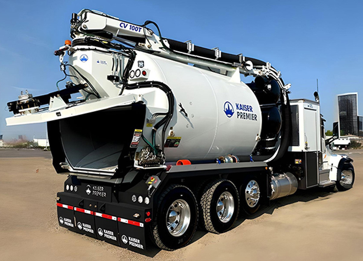 The CV Series line of hydrovacs from KAISER PREMIER are purpose-built to handle the toughest applications in the harshest of climates, according to the maker. The heart and soul of the unit is the powerful Robuschi DV145 blower, a 27-inch Hg, 6,250 cfm positive displacement blower. The unit comes ready to dig with its Top Gun boom that allows 342-degree rotation and a 26-foot reach or 20-foot depth without clamping on extension pipes. It carries 1,800 to 2,200 gallons of water depending on the model. Material evacuation is simple with the wide-mouth door. There is no need to raise the truck bed as its sloped floor uses gravity, a high-flow washout system and optional dozer plate to quickly and easily offload material. All critical components are centralized and housed in a protected, insulated and heated van body. 970-542-1975; www.kaiserpremier.com