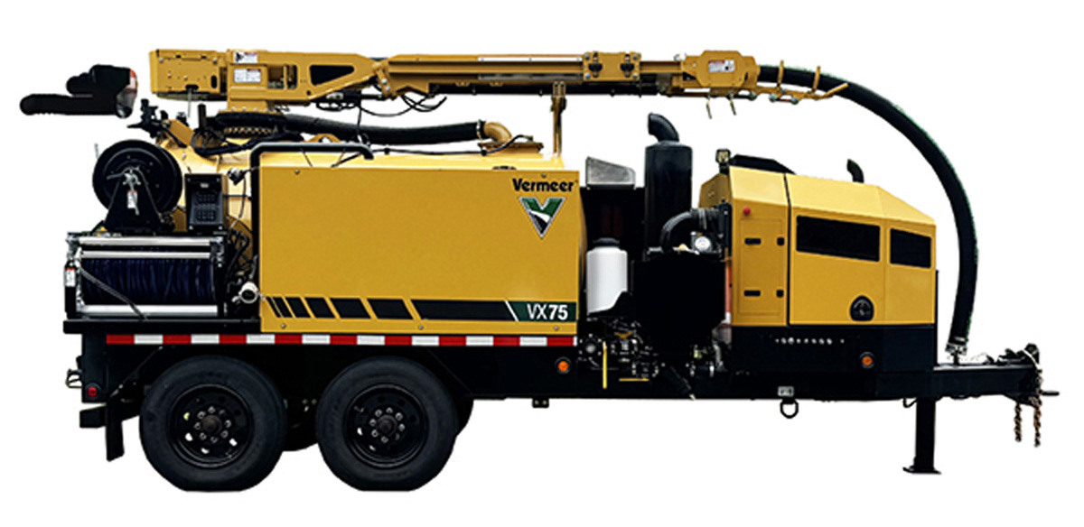 The Vermeer VX75 vacuum excavator is a powerful trailer-mounted unit designed for demanding utility work including potholing, HDD slurry management and microtrenching dust containment. It is equipped with a 1,500 cfm vacuum blower generating 15 inches Hg of suction force and powered by a 74.3 hp Kubota diesel engine. The unit features an 8 gpm, 3,000 psi water system, dual cyclone filtration system and full open cam over the spoil tank door for easy clean-out. A CANbus control system simplifies wiring and improves reliability while the full-function remote control allows operators to manage all functions from a distance, eliminating the need to manually restart the unit during operations. This remote capability is especially valuable for slurry management applications, saving time and fuel. 352-728-2222; www.vermeer.com